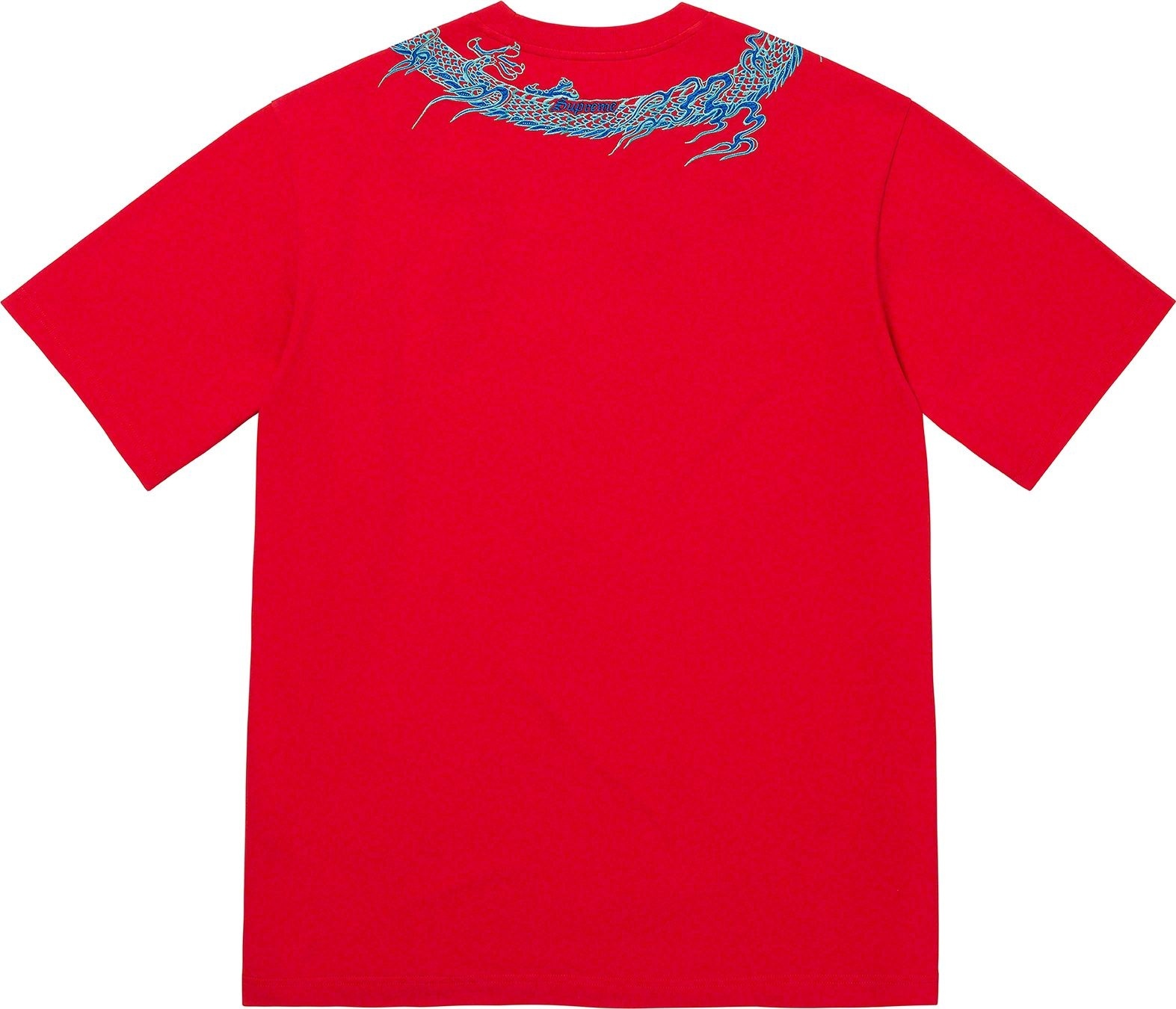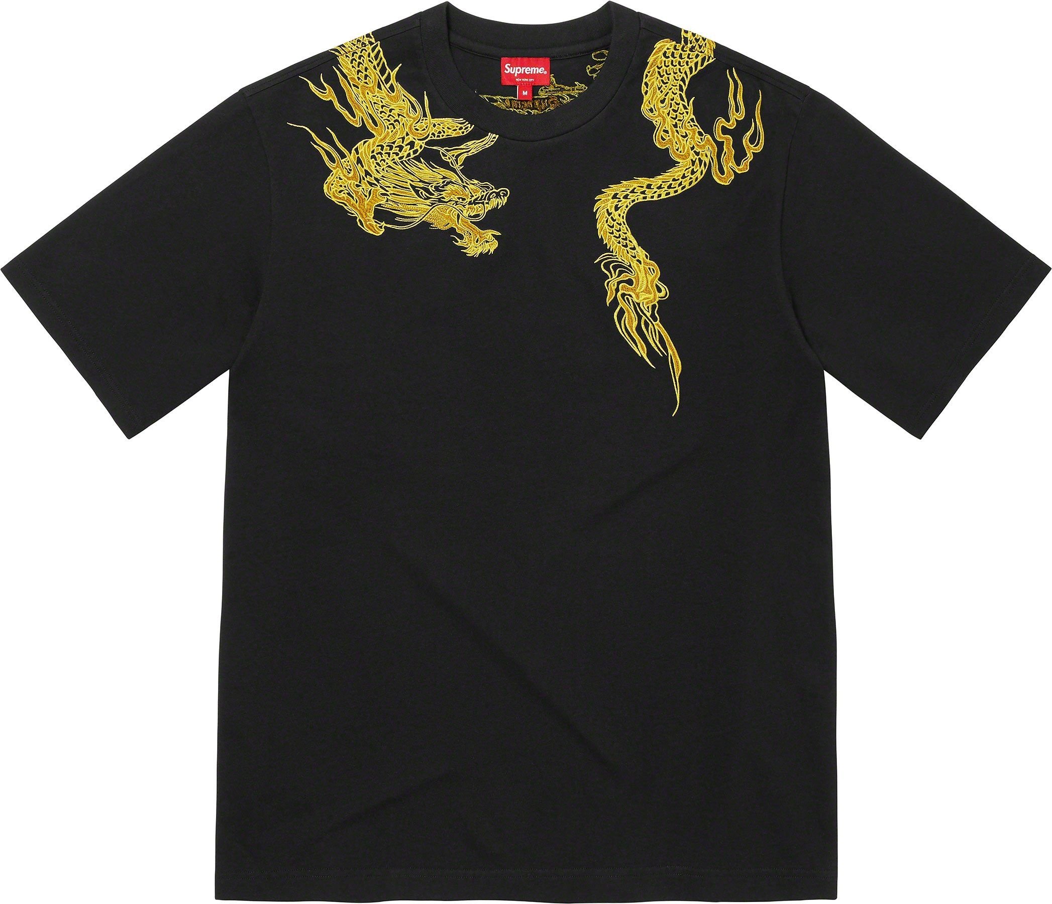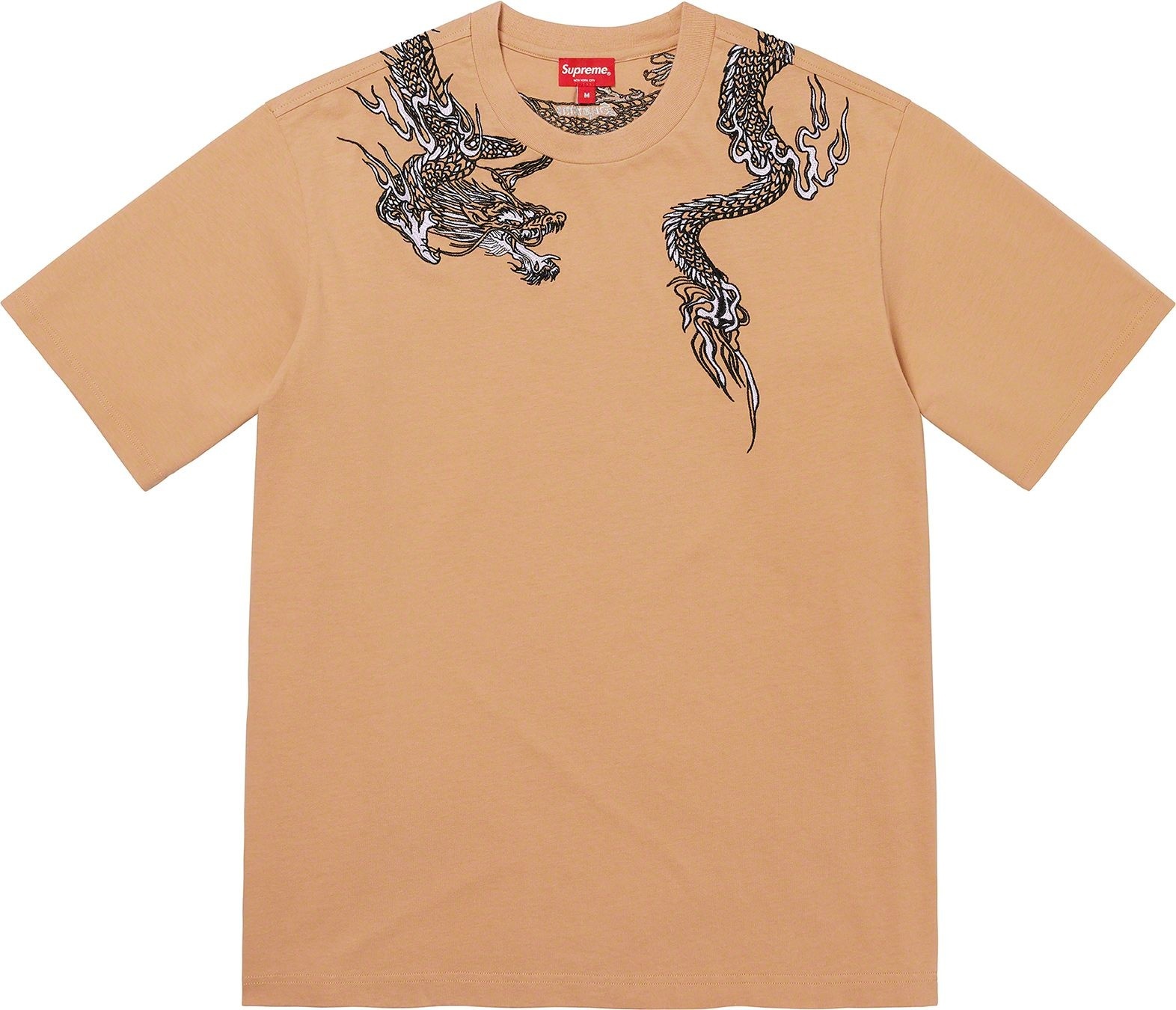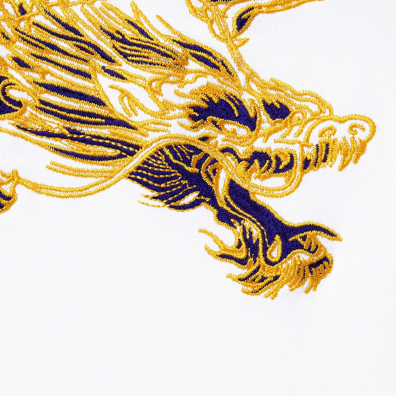 All cotton jersey crewneck with embroidered graphic on shoulders.