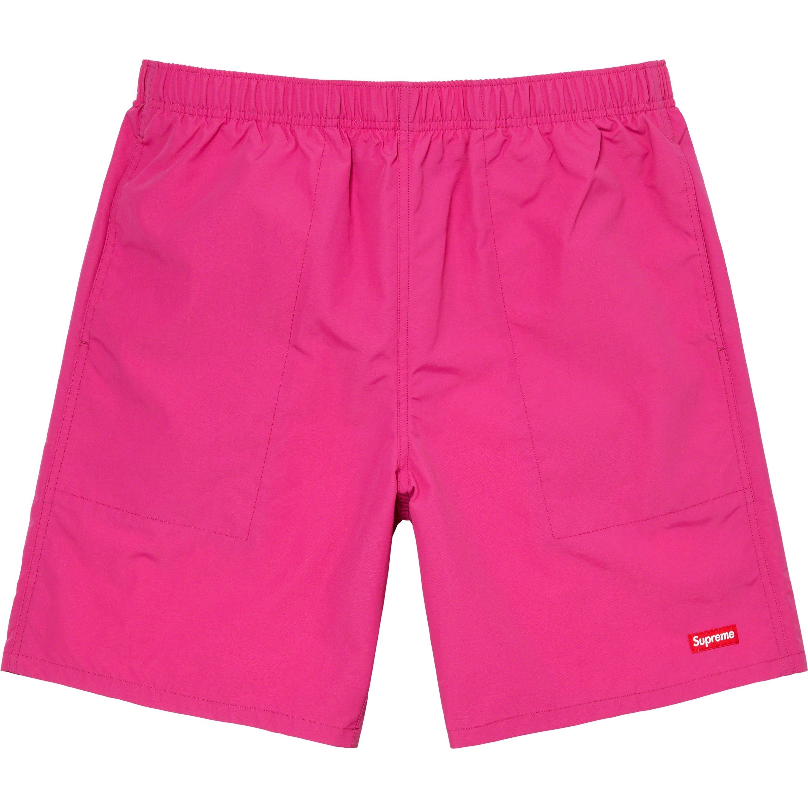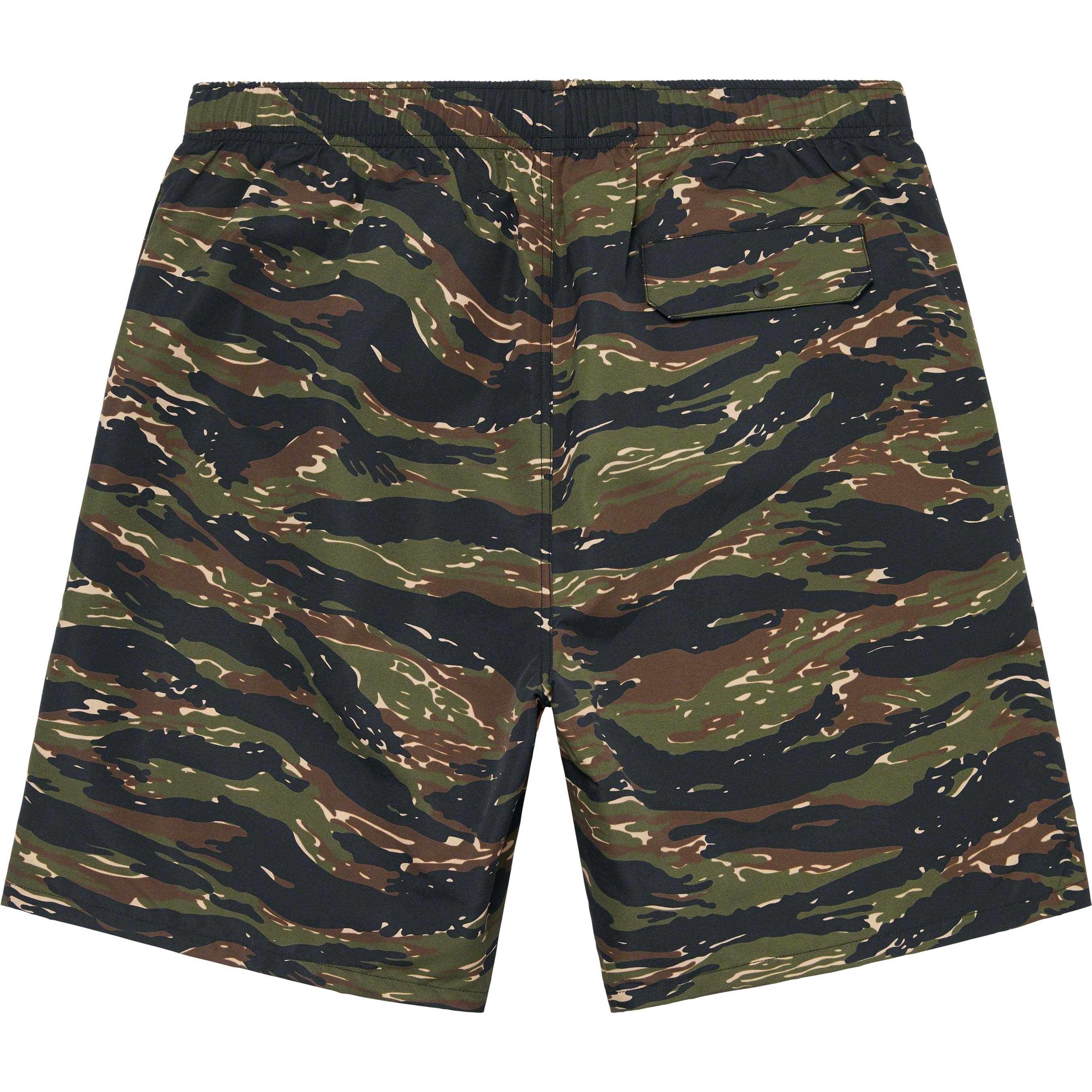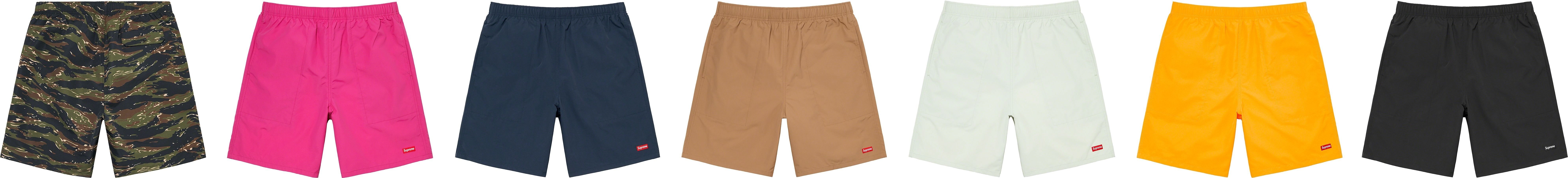 Supplex® nylon taslan with mesh lining and loose fit. On seam hand pockets and snap flap back pocket. Elastic waistband with interior drawcord and interior hanging key pocket. Woven logo label at lower leg.