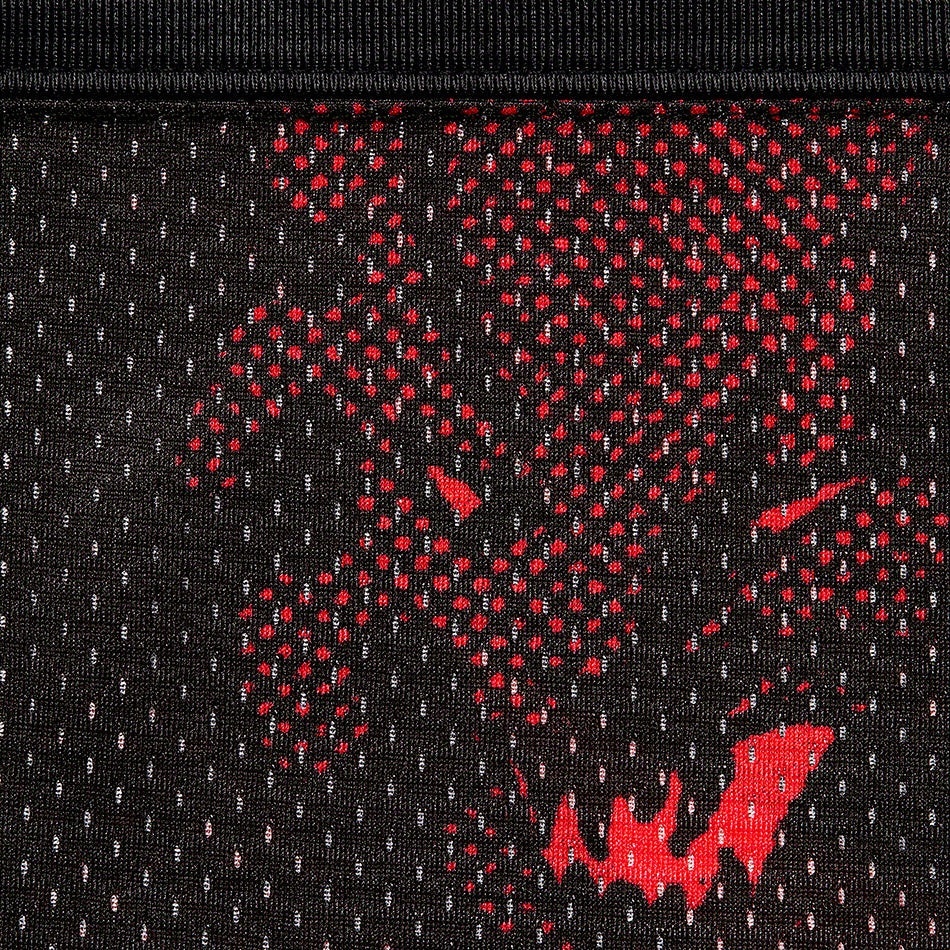 Poly eyelet mesh with dazzle yoke and printed graphic. Printed graphic on back yoke and athletic label at lower front.