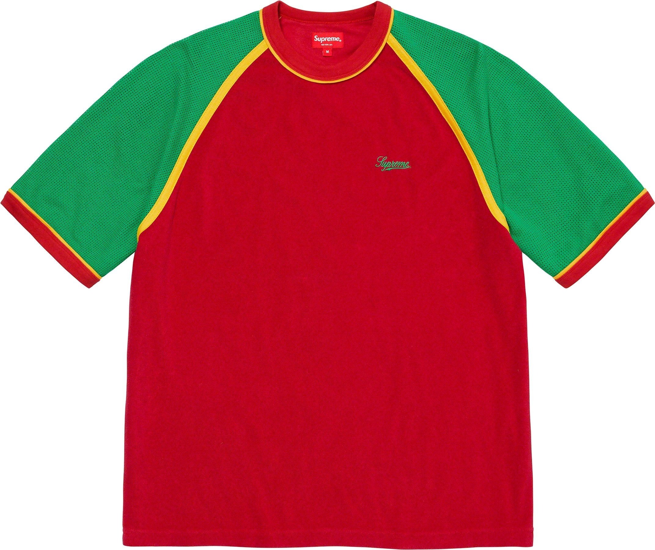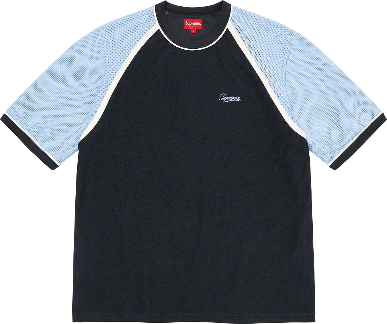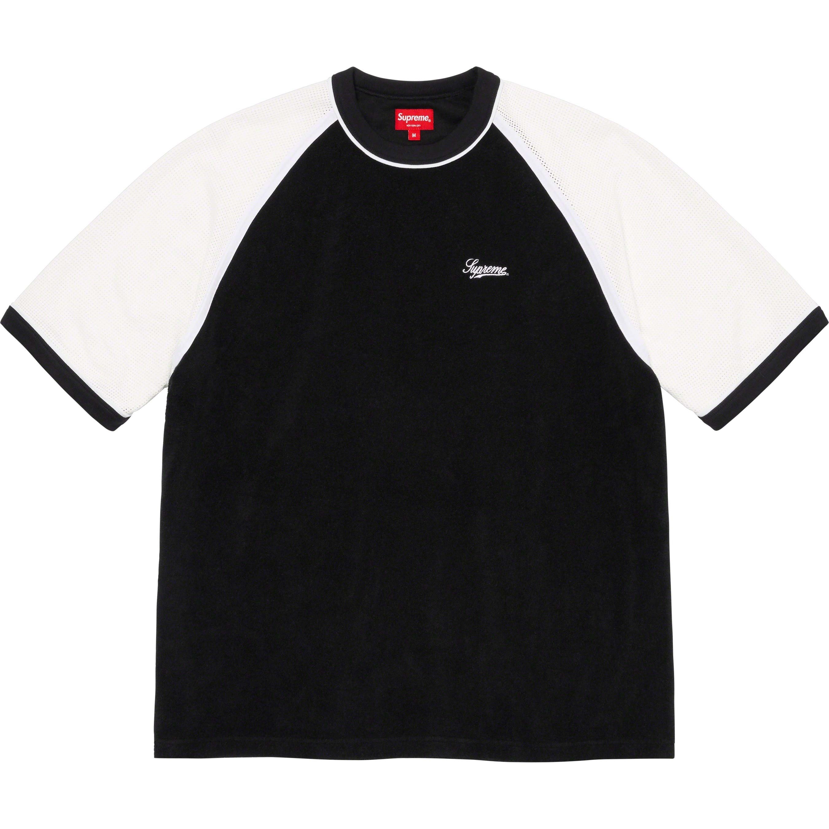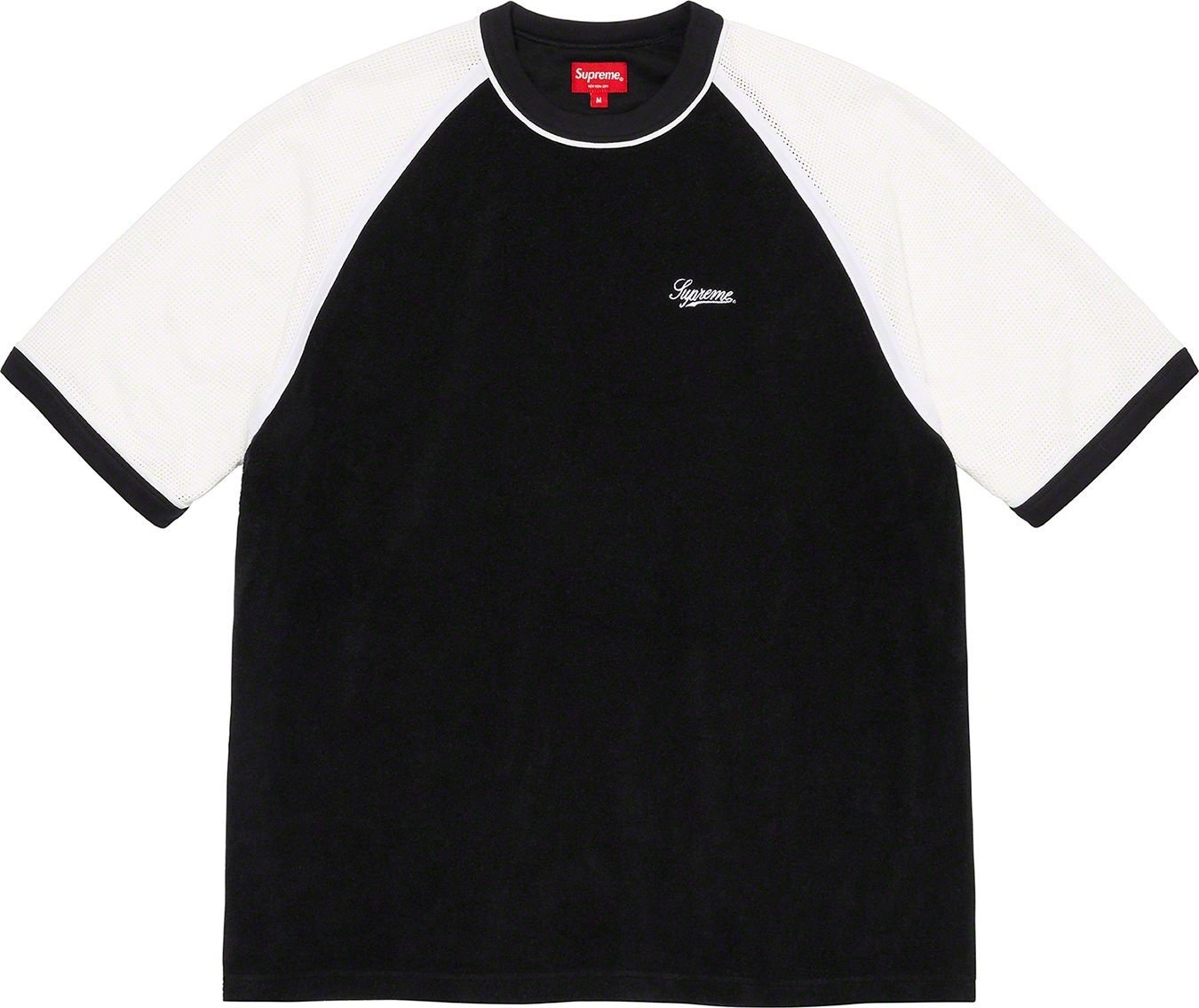 Cotton blend terry crewneck with mesh sleeves. Embroidered logo on chest.